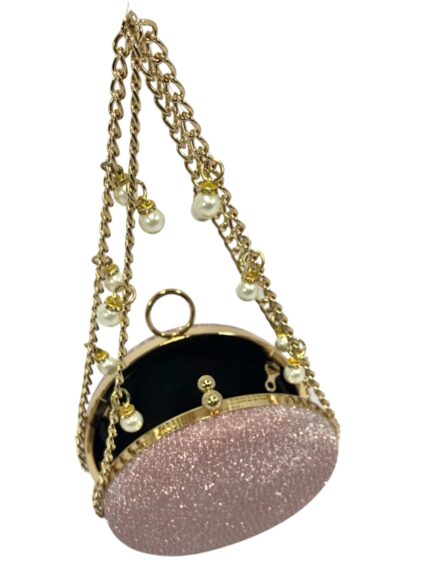 FMLV Pearl Chain Round Shimmer Clutch Blush gold