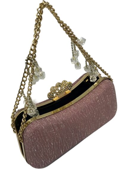FMLV Sparkling Pink Evening Clutch with Crystal Accents