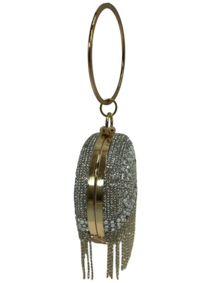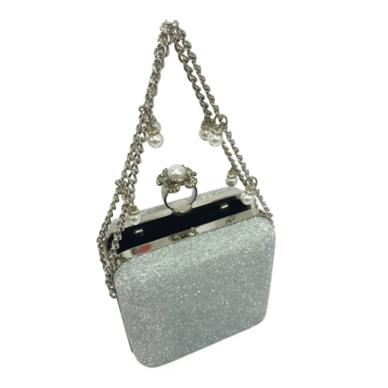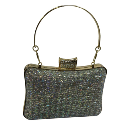 FMLV Sparkling Silver Evening Clutch with Handle