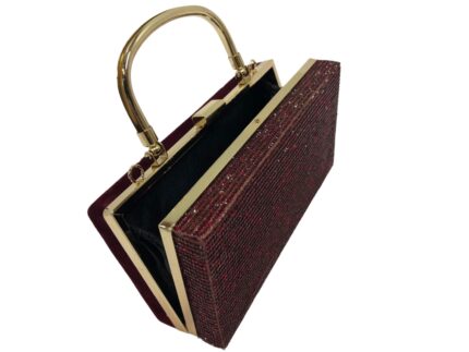 FMLV Sparkling Burgundy Evening Clutch with Gold Handle