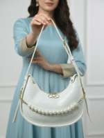 FMLV White Croc Texture Shoulder Bag
